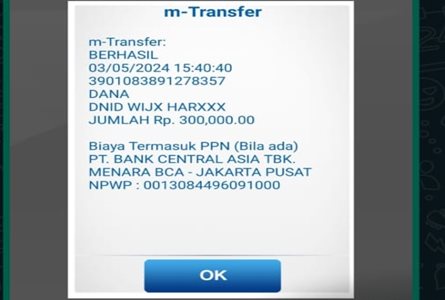 “Karena buru-buru saya langsung mentranfer melalui Aplikasi Dana sebesar Rp 300.000,- ,” tambahnya.