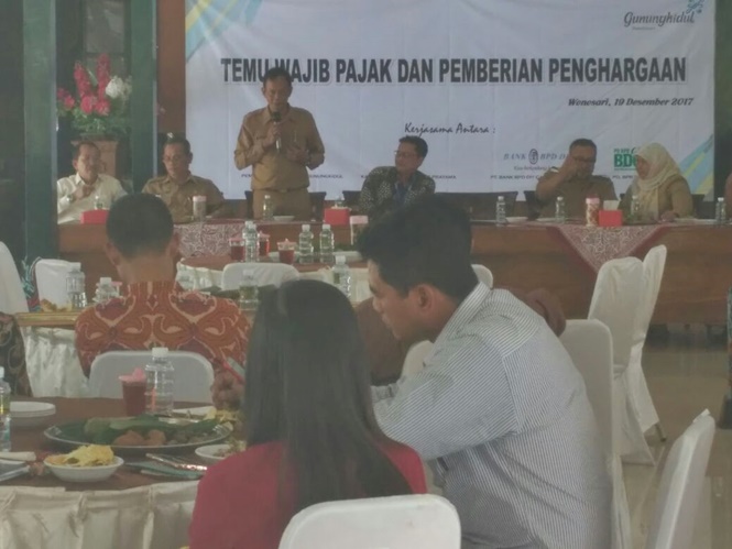 WONOSARI, Selasa Pon – Lamanya mengurus perizinan tempat usaha membuat kesal pengusaha. Untuk mendapatkan ijin harus bertele-tele membuat pengusaha seakan digantung dalam urusan perizinan. Hal ini terungkap dalam dialog temu wajib pajak, dan pemberian penghargaan dari Kantor Pelayanan Pajak Pratama Wonosari di Bangsal Sewoko Projo, Selasa, 18/12.