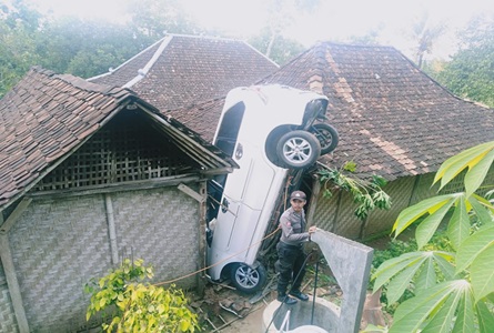 NGLIPAR – Jumat Pahing | Mobil Toyota Avanza bernopol B 1022 PZP terjun bebas menimpa rumah warga di Padukuhan Pagutan, Desa Pengkol, Kecamatan Nglipar Jumat (17/01/2020).