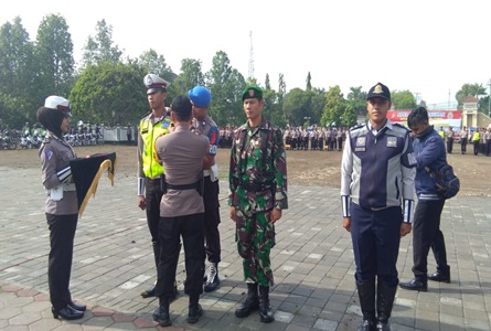 WONOSARI – Jumat Wage | Apel gelar pasukan Operasi Lilin Progo 2019 dalam rangka pengamanan Natal 2019 dan Tahun Baru 2020 Kabupaten Gunungkidul digelar di Alun-alun Pemerintah Kabupaten (Pemkab) Gunungkidul, Jumat, (20/12/2019) pagi.
