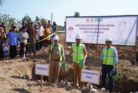 PATUK-SELASA WAGE | Pemerintah Kabupaten Gunungkidul mulai membangunan taman parkir megah di kawasan Gunung Api Purba Nglanggeran. Peletakan batu pertama dilakukan Bupati Gunungkidul, Sunaryanta, Selasa (1/8/2023).