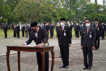 Pengambilan Sumpah Janji Jabatan Administrator dan Jabatan Pengawas dilaksanakan di Alun alun Pemkab, Kamis (28/4/2022).