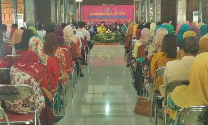WONOSARI, (Kamis Pon) -Pengurus Persatuan Wanita Olahraga Seluruh Indonesia (Perwosi) 18 kecamatan se Gunungkidul dilantik. Kegiatan pelantikan dihadiri 25 Gabungan Organisasi Wanita (GOW), sekaligus silaturahmi dan halal bihalal bersama GKR Hemas.