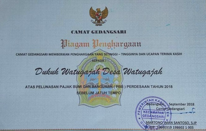 “Dianggap sebagai kecamatan termiskin, tetapi rakyat di tujuh desa, mampu membayar PBB sebelum jatuh tempo,” ujar Camat Gedangsari, Imam Santoso, (12/11).