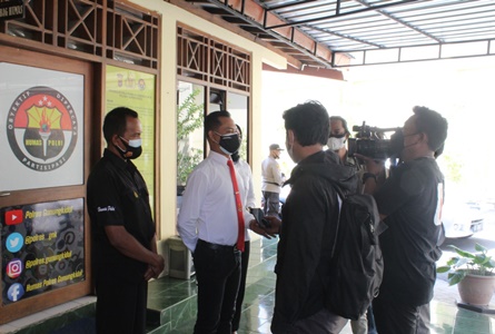 Kanit Pidum Polres Gunungkidul Iptu Wawan Anggoro,S.H di dampingi Kanit Uppa Ipda Ratri SH dan Kasubag Humas Iptu Suryanto,S.Pd memberikan penjelasan kepada awak media, Senin, (16/08/2021) siang.
