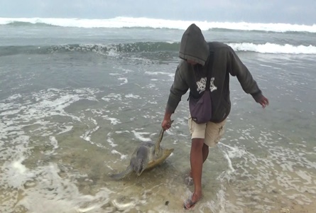 “Saat didekati, penyu sudah mengeluarkan bau yang tidak sedap,” katanya.