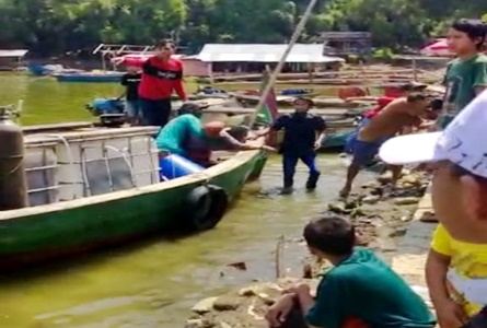 BOYOLALI-SAPTU LEGI | Anggota Kepolisian Sektor Kemusu Polres Boyolali melaporkan tenggelamnya perahu wisata yang membawa puluhan penumpang menuju Warung Apung Padukuhan Bulu, Desa Wonoharjo Boyolali Jawa Tengah.
