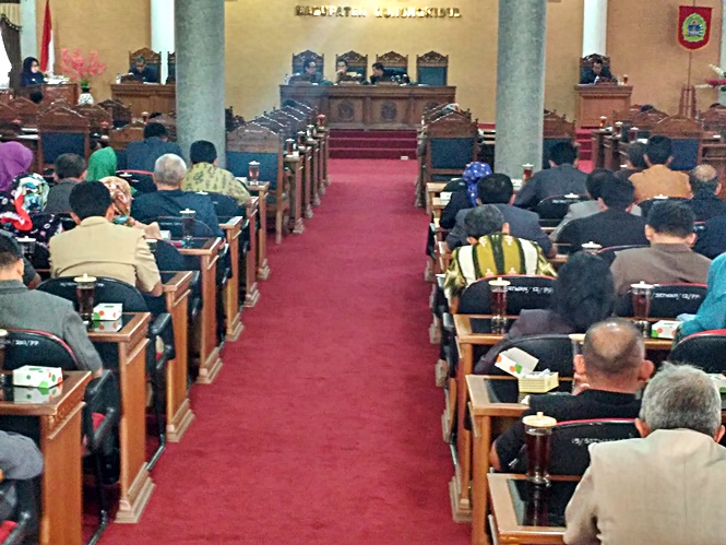 WONOSARI, Kamis Kliwon-Paripurna membahas usulan Bupati Gunungkidul tentang nota kesepakatan antara Pemkab dengan DPRD perihal Pagu Indikatif Wilayah Kecamatan (PIWK) tahun anggaran 2019. Bupati mengusulkan dana PIWK sebesar Rp 15 M, DPRD masih pikir-pikir, belum ada kesepakatan, Kamis (25/01).