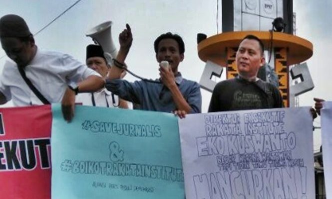 BANDAR LAMPUNG, SELASA WAGE-Polda Lampung menolak laporan dugaan pelecehan profesi Jurnalis yang dilakukan oleh Direktur Eksekutif Rakata Institute Eko Kuswanto. Polda beralasan penolakan laporan yang diajukan oleh aliansi pers Lampung peduli demokrasi tersebut, tidak memenuhi unsur pelecehan sesuai dengan materi pengaduan.