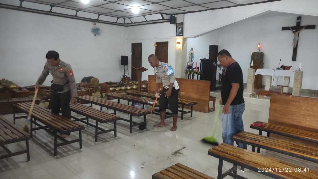 GEDANGSARI – MINGGU PON |Tidak sekedar menjalankan tugas pokok melayani, mengayomi dan melindungi, jajaran kepolisian Polsek Gedangsari menjalankan misi Bakti Religi. Kegiatan tersebut dilakukan di lingkungan tempat Ibadah Umat Katholik dan Kristiani di Wilayah Hukum Polsek Gedangsari, Minggu (22/12/2024) pagi hingga siang.