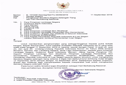 Menteri Sekretaris Negara Pratikno mengumumkan agar seluruh lembaga negara mengibarkan bendera setengah tiang. (Red)