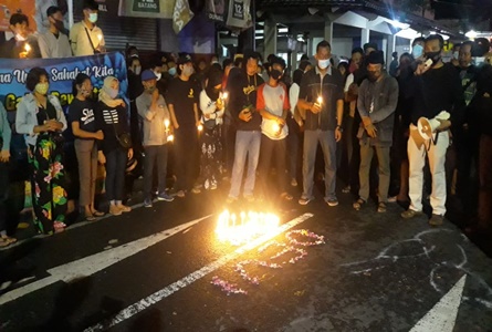 Selain do’a bersama, puluhan pemuda tersebut melakukan orasi untuk menyampaikan aspirasi juga menyalakan lilin di jalan untuk mendo’akan korban.