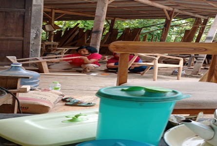 Enam tukang laki-laki serta 6 ibu rumah tangga ngebut menyelesaikan pesanan. Ibu rumah tangga diberi tugas khusus mengamplas meja dan kursi. Mereka bekerja sejak Januari 2022.