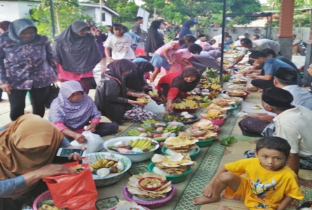 KLATEN, Minggu Pon – Ratusan warga masyarakat Padukuhan Karangmoncol 04/01, Desa Sanggrahan, Kecamatan Prambanan, Kabupaten Klaten, Jawa Tengah (Jateng), dengan khidmat menyelenggarakan upacara tradisi pembersihan makam leluhur, kendurian, dan tabur bunga atau sering disebut Nyadran, Sabtu, (27-04).