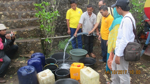 PANGGANG, Minggu Pon – Berdasarkan hitungan Rumah Aspirasi Slamet, S.Pd. MM – Titiek Soeharto hingga Oktober 2017, masyarakat Gunungkidul yang membutuhkan air bersih masih cukup banyak. Hujan akhhir September silam belum mengisi ribuan Penampungan Air Hujan (PAH). Berkenaan dengan hal tersebut Rumah Aspirasi terus bergerilya membantu pengiriman air bersih.