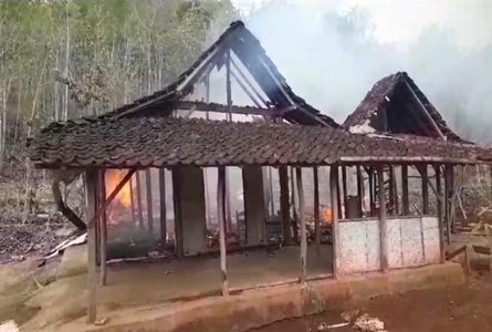 RONGKOP- SENIN LEGI | Rumah milik Sarnoto (67) warga Padukuhan Dengok RT 02 RW 10, Kalurahan Pucanganom, Kapanewon Rongkop, Kabupaten Gunungkidul ludes terbakar, Senin (11/12/2023) pukul 08.30 WIB. Akibat peristiwa tersebut korban mengalami sejumlah luka saat berusaha menyelamatkan kambing peliharaanya dari kobaran api.