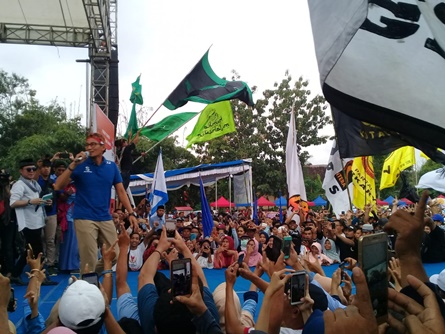 WONOSARI, JUMAT KLIWON-Kampanye terbuka atau rapat umum yang dilaksanakan di Lapangan Ki Demang Wonopawiro, Desa Piyaman, Kecamatan Wonosari, Gunungkidul dihadiri ribuan warga Gunungkidul dari berbagai penjuru, Jumat (05/04/2019).