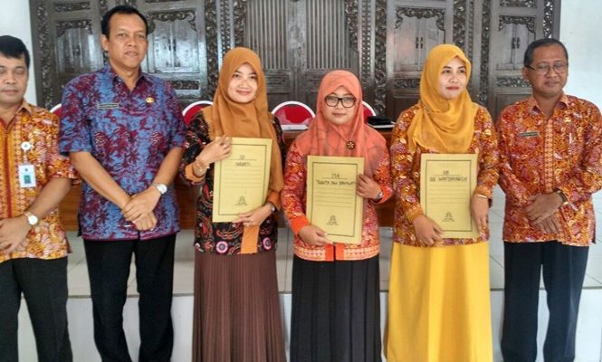 WONOSARI, KAMIS PON– Dinas Pendidikan Pemuda dan Olahraga (Disdikpora), Kabupaten Gunungkidul , membagikan 240 sertifikat pendidik, Kamis (29/03) di Kantor Disdikpora Kabupaten Gunungkidul. Setifikat merupakan bentuk pengakuan guru profesional.