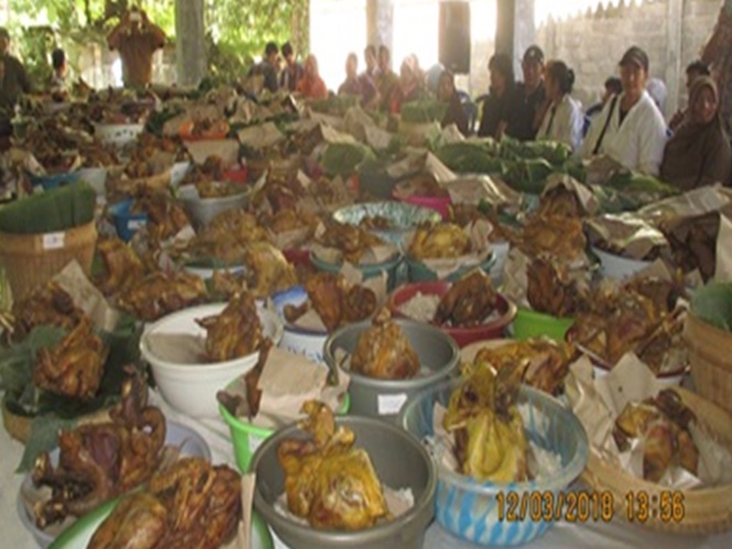 Tahun 2018, dalam ritual terebut disedekahkan nasi uduk dan 3.500 ingkung. Usai upacara, tidak pandang bulu, setiap hadirin menerima satu paket ingkung utuh.