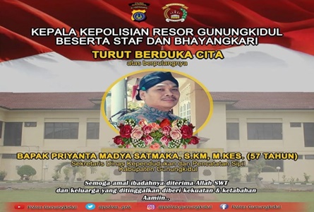 Bupati Sunaryanta, Sekretaris Daerah, Forkompinda, dan Segenap jajaran Organisasi Pemerintah Derah menyatakan belasungkawa karena kehilangan putra Gunungkidul terbaik.