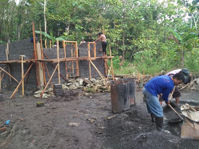Pengerjaan rumah, menurut Sriyati, dilakukan dengan kerjabakti, melibatkan 4 RT secara bergiliran. Pada saat ini bangunan mecapai 50%.