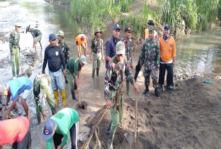 Dimotori langsung oleh Camat Gedangsari Martono Imam Santoso, masyarakat bersama Forkopimcam Gedangsari, Perangkat Desa setempat membersihkan sungai Ngalang yang sempat mampet pasca banjir besar beberapa hari lalu.