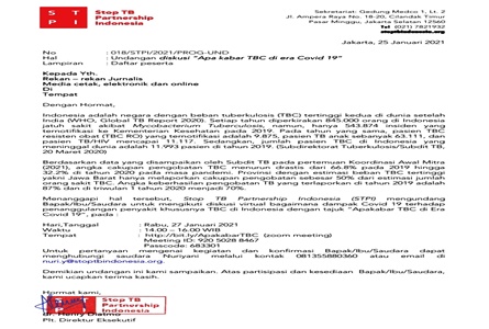 Terkait data tersebut di atas, institusi Stop TB Patnership Indonesia mengajak berdiskusi ihwal perkembangan penyakit TBC di Indonesia di tengah pandemi. Undangan ditujukan ke sejumlah pihak, termasuk para jurnalist.