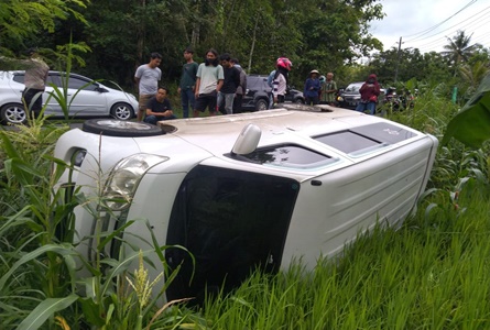 “Diduga mengemudi dalam keadaan mengantuk, akibatnya mobil yang dikemudikan keluar jalur sebelah kiri, akhirnya terperosok ke sewah sedalam dua meter hingga terjungkir, ” ucapnya.