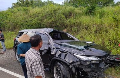 Tabrak Panther di Perempatan JLS, Fortuner Terbalik