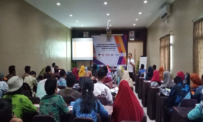 WONOSARI, SELASA WAGE– Komisi Pemilihan Umum Daerah (KPUD) Kabupaten Gunungkidul menyelenggarakan Bimbingan Teknis (Bimtek) untuk 55 Relawan Pemilu di salah satu Hotel di Kecamatan Wonosari, Selasa, (29/01). Relawan sejumlah itu diharapkan mampu meningkatkan partisipasi masyarakat dalam Pemilu 17 April 2019.
