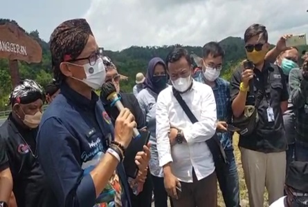 PATUK-SENIN KLIWON | Kunjungan Menteri Pariwisata dan Ekonomi Kreatif RI, Sandiaga Salahuddin Uno di Destinasi Desa Wisata Nglanggeran, Kapanewon Patuk, Kabupaten Gunungkidul menjadi momen penting para pelaku wisata menyampaikan keluh kesahnya, Senin, (11/10/2021) siang.