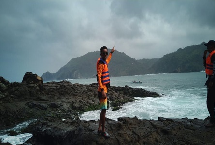 Sang istri sempat melihat suaminya terhempas ombak kemudian terjatuh. Melihat kejadian itu sang istri langsung lari ke pinggir minta tolong kepada warga bahwa suaminya kecebur ke laut.