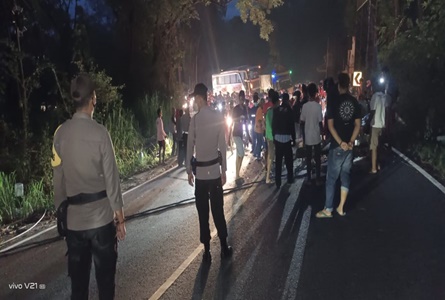 PLAYEN-SABTU PON | Dua pengendara sepeda motor yang melintas di Jalan Wonosari-Yogyakarta tepatnya di Padukuhan Gading III, Kalurahan Gading, Kapanewon Playen, Kabupaten Gunungkidul tertimpa tiang listrik Sabtu, (13/11/2021) pukul 17.20 WIB. Beruntung kedua korban lolos dari maut.