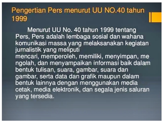 Di laman http://swararesi.com yang dipublis 1 Juni 2018 disebutkan, yang dimohonkan diujimateri adalah Pasal 1 ayat (2), Pasal 9 ayat (2) dan Pasal 15 ayat (1) Undang Undang Nomor 40 Tahun 1999 tentang Pers.