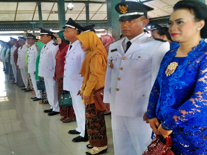 WONOSARI, SENIN KLIWON-Pilkades serentak yang dilaksanakan 13 Oktober 2018 silam dilantik Bupati Gunungkidul, Hj. Badingah, S.Sos di Bangsal Sewoko Projo, Senin, (26/11). Tiga puluh kades terlantik diwejang untuk berpegang teguh pada tiga hal, transparan, akuntabel, dan tanggung jawab.
