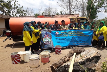 Pada kesempatan ini, mereka memberikan bantuan 30 tangki air bersih di Padukuhan Sawahan 13, Desa Jatiayu, Kecamatan Karangmojo.