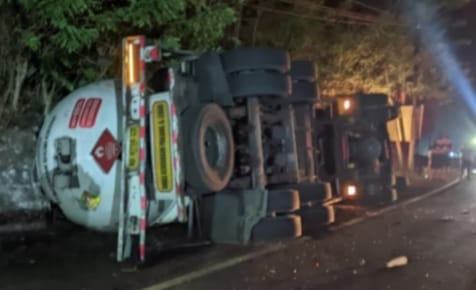 PATUK – Truk tangki pengangkut gas LPG mengalami kecelakaan tunggal di jalan Wonosari -Jogja tepatnya di Padukuhan Karangsari, Kalurahan Nglanggeran, Kapanewon Patuk, Kabupaten Gunungkidul. Akibat insiden tersebut sopir truk mengalami kaki kanan putus dan meninggal dunia di lokasi, Sabtu (20/09/2025) pukul 02.52 WIB.