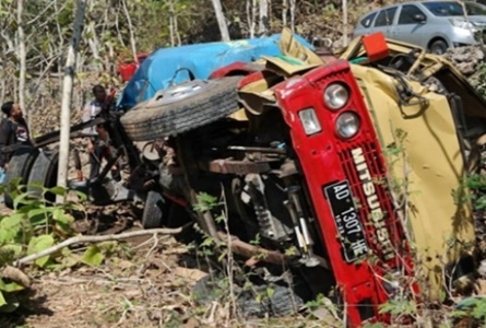 “Truk tangki terjun ke dasar jurang sedalam kurang lebih 25 meter. Beruntung saat kejadian sopir berhasil selamat karena loncat keluar dari kendaraan,” ungkap Chrismawan.
