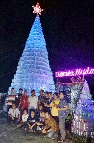 “Karena dalam pembuatan pohon Natal air mineral bekas ini, kaum muslimin pun ikut andil dalam pengerjaannya,” tambahnya.