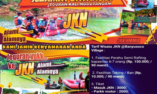 “Disini sudah kita siapkan perahu semi rafting yang muat 6-7 orang, perahu kano, ban bekas untuk tubbing dan menyusuri Kali Ngguyangan yang masih jernih airnya, lengkap dengan pelampung pengaman,” ungkap Juwarno, Ketua Pemuda Dusun Banyusoca.