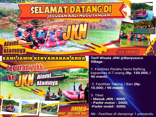 “Disini sudah kita siapkan perahu semi rafting yang muat 6-7 orang, perahu kano, ban bekas untuk tubbing dan menyusuri Kali Ngguyangan yang masih jernih airnya, lengkap dengan pelampung pengaman,” ungkap Juwarno, Ketua Pemuda Dusun Banyusoca.